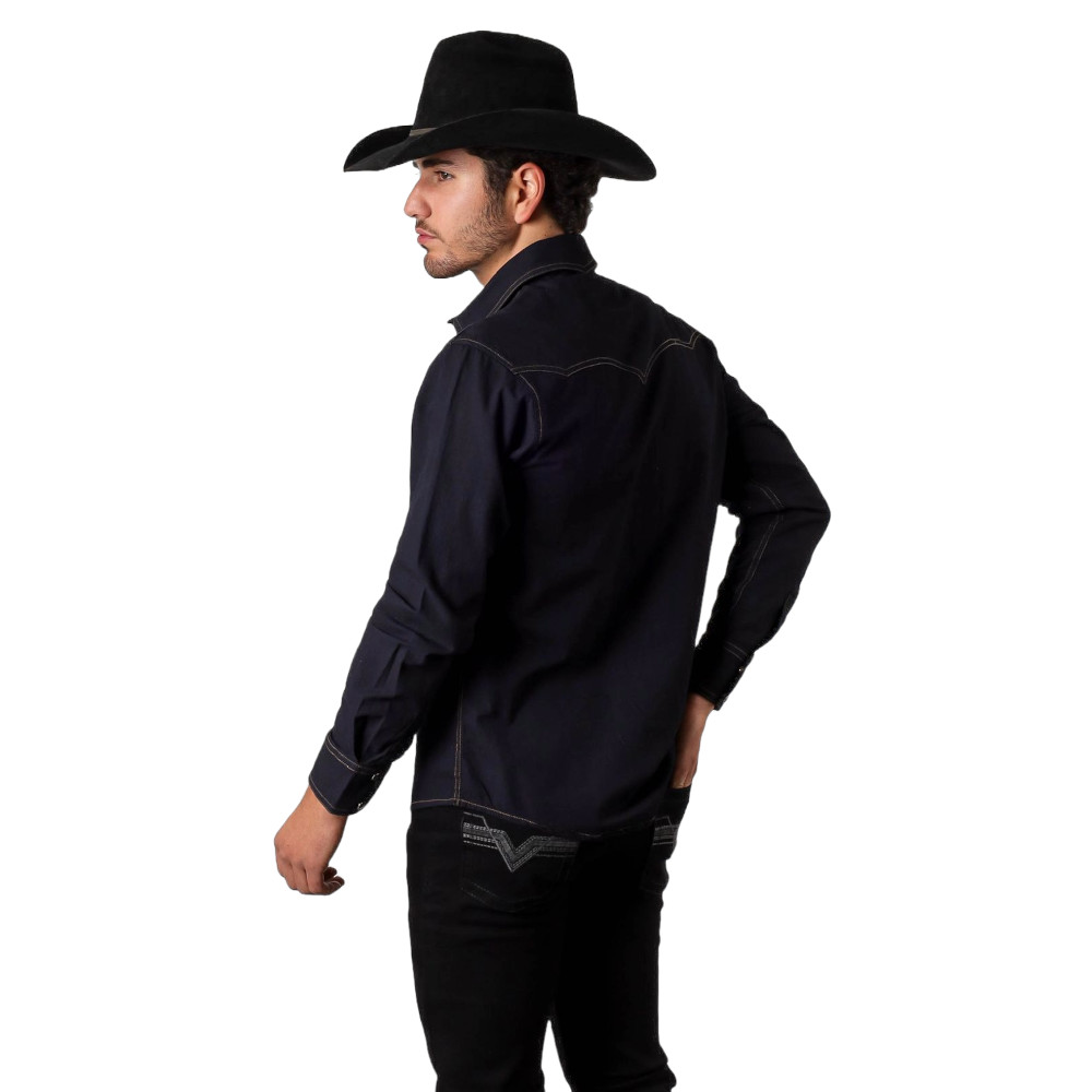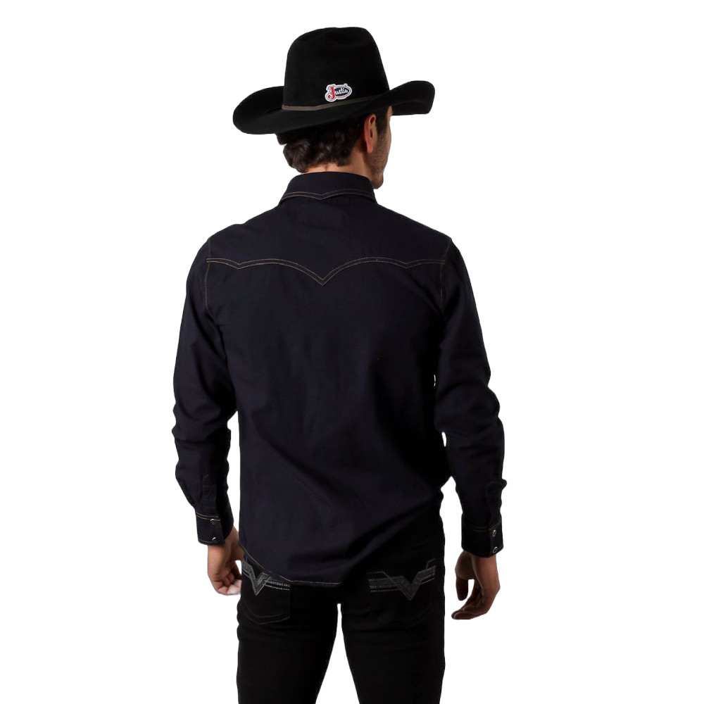 Camisa rodeo para caballero, en mezclilla con proceso. Cuenta con dobles costuras, botón perla de broche. Corte Slim Fit.