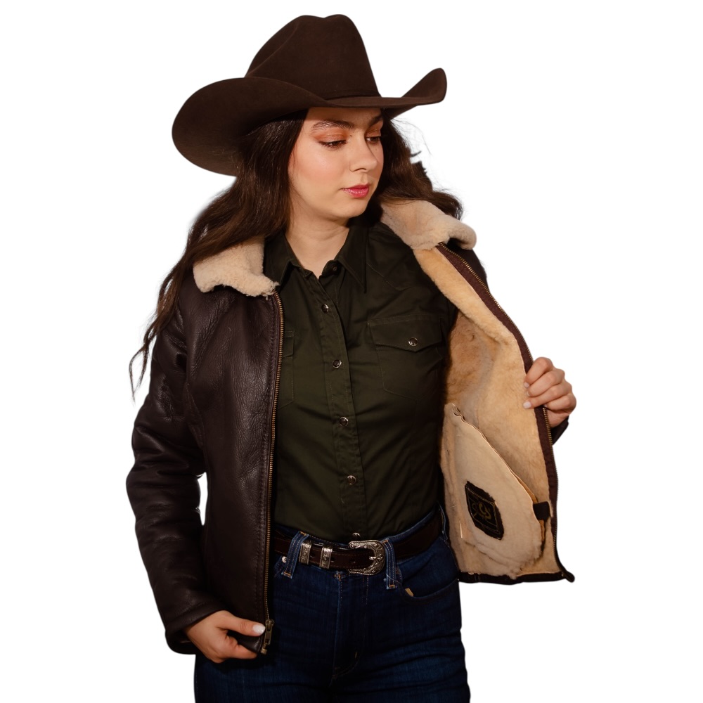 La chamarra cazadora de piel Malboro Fabricada en 100% piel natural con lana de borrego, esta chaqueta combina elegancia y resistencia,