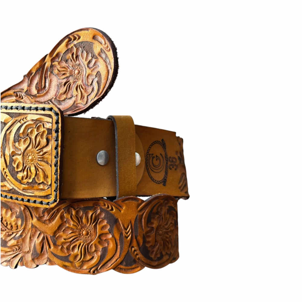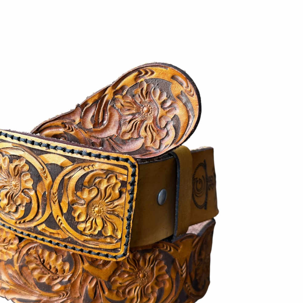 Cinto de vaqueta con un diseño cincelado, un trabajo 100% artesanal y de la mejor calidad, perfecto para utilizar en cualquier ocasión, fácil de combinar y cómodo de usar.