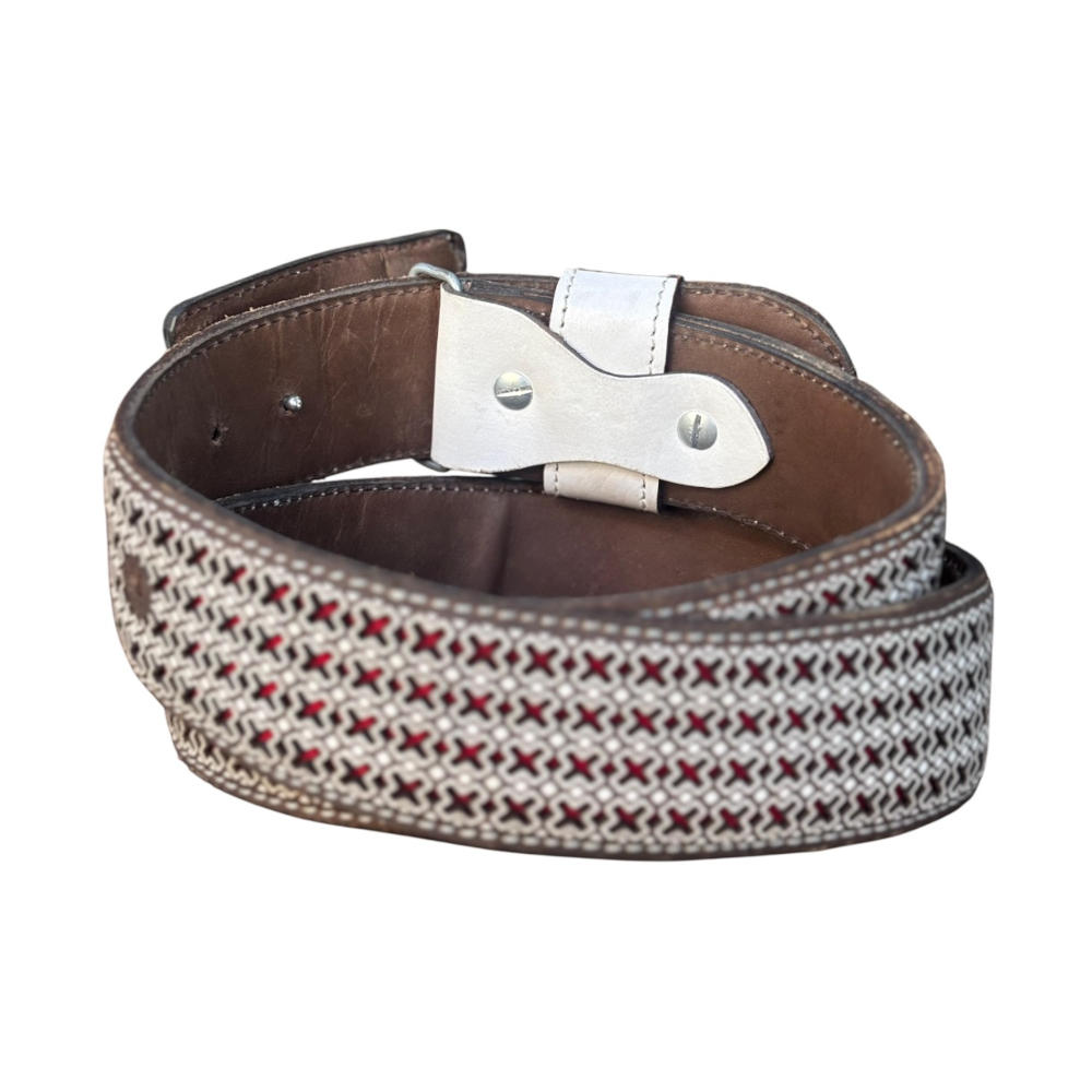 Cinto de vaqueta con un diseño grabado a láser, un trabajo 100% artesanal y de la mejor calidad, perfecto para utilizar en cualquier ocasión, fácil de combinar y cómodo de usar.