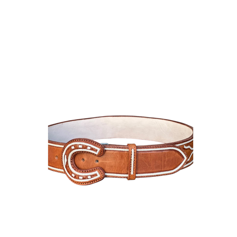 Fabricado en pita y vaqueta, este cinturón ofrece durabilidad y resistencia, asegurando que se mantenga en óptimas condiciones a lo largo del tiempo. Su ancho de 5 cm.