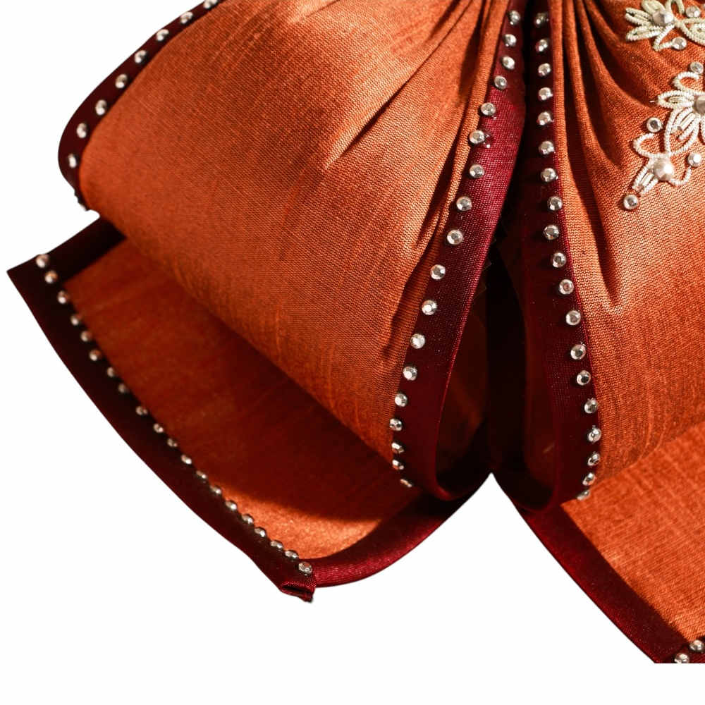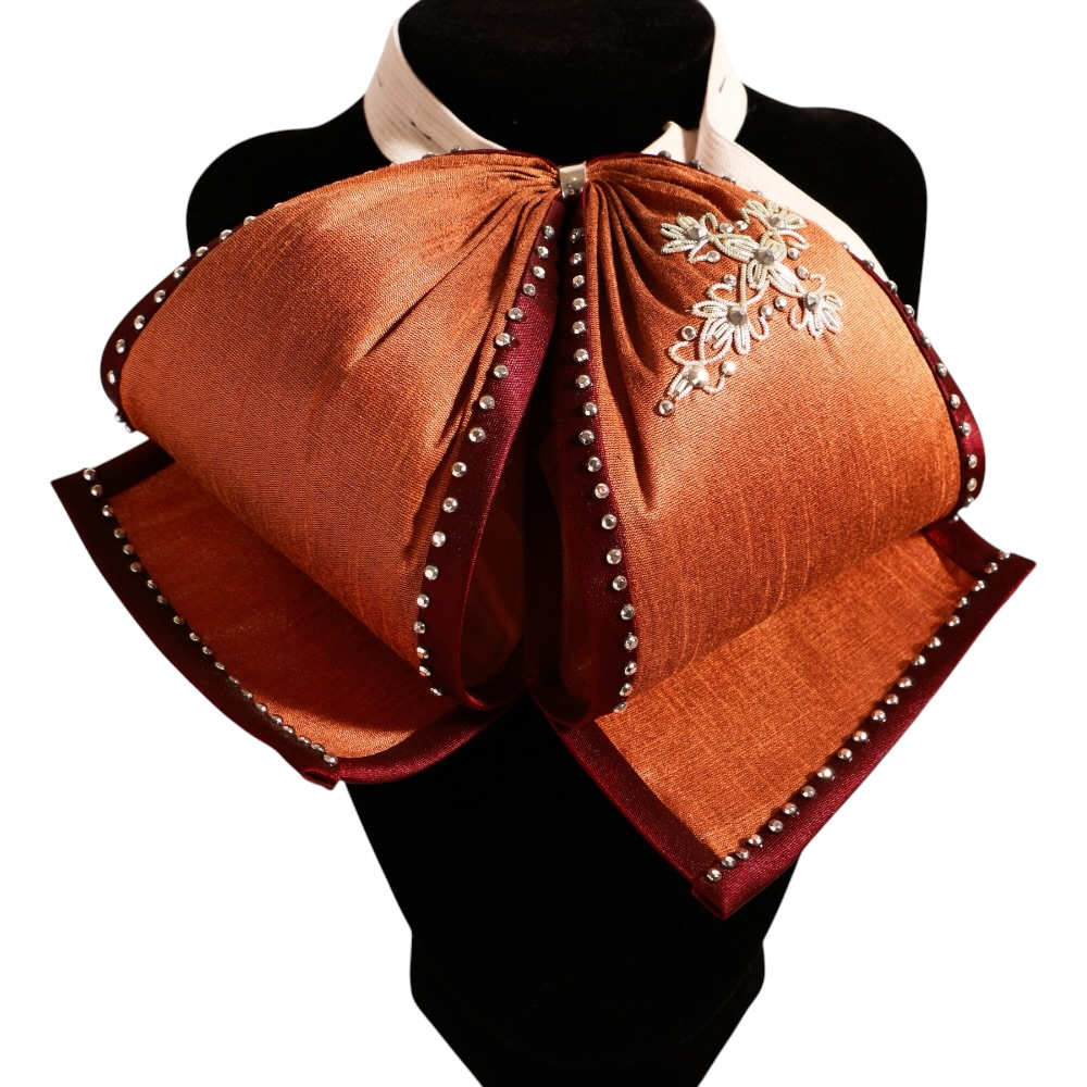 Moño Charro artesanal marca Indumentaria Charra. Confeccionado en satín de alta calidad con bordados de gala detallados. El accesorio perfecto para completar tu traje con elegancia y respeto a la tradición.